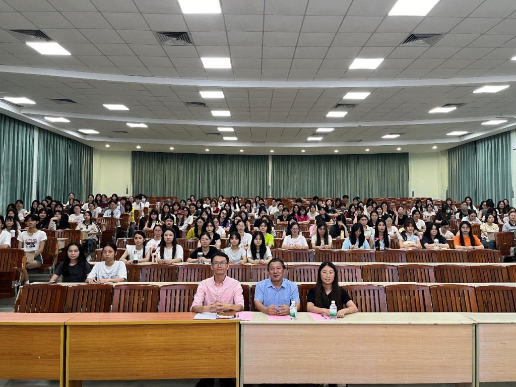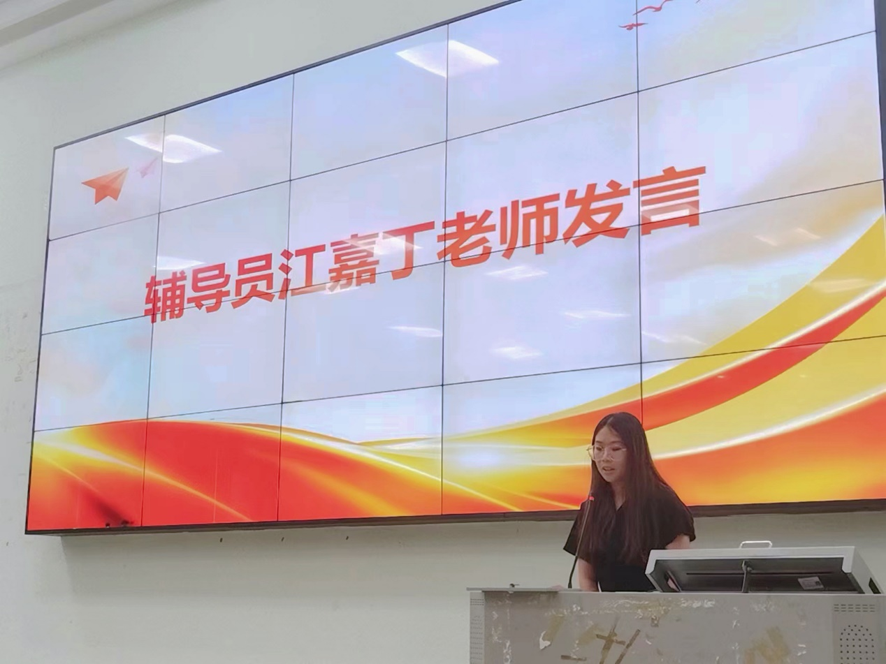 接下来,辅导员江嘉丁老师分享了五点建议,第一,大学是实现梦想的起点,鼓励同学们设定目标,勇往直前;第二,提倡同学们在大学期间勤奋学习,拓宽知识面,提高综合素质,并培养创新和实践能力;第三,自觉遵守法律法规和学校规章制度,维护校园秩序;第四,珍惜时光,团结友爱,互助成长;第五,关爱自己,关注心理健康,积极参加体育锻炼和文体活动,以饱满的热情投入到学习和生活中。