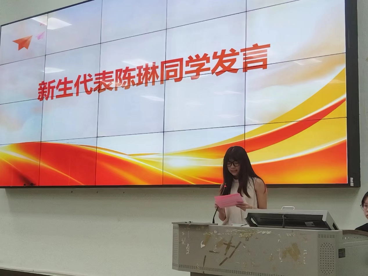 紧接着,新生代表陈琳同学发言,她提到了校园里的亮丽风景,强调了珍惜时间、勤奋学习、追求卓越、勇于探索和创新、团结协作的重要性。她鼓励同学们在华商创造属于自己的精彩,成为自己心中了不起的人。