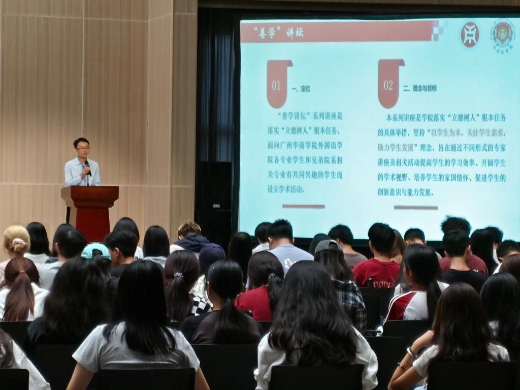 9月24日下午,在金秋送爽的季节里,pp电子官方网站入口在肇庆校区2号楼报告厅迎来了一场思想和文化的盛宴,开展了“善学”讲坛第1期和第2期。学院领导、教师代表及肇庆校区全体学生参加了讲座,本次讲座由学工办副主任何顺发老师主持。