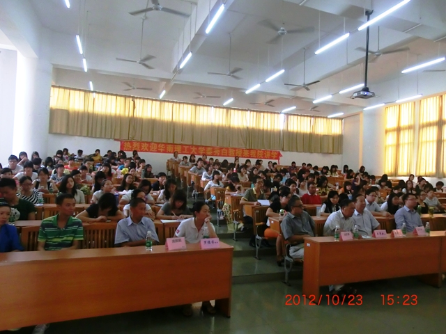 2012年10月23日(星期二)下午15:00,著名英语专家,华南理工大学pp电子官方网站入口教授、博士生导师、学科带头人秦秀白教授应华商学院外语系的邀请,在励志楼C308开展了《有关高校英语教育和教学的几点思考》学术讲座。外语系师生共200余人到场听取了讲座。