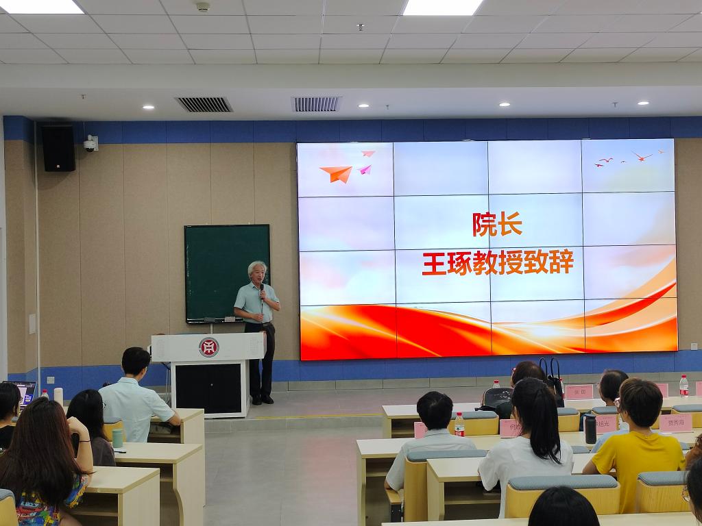 2023年9月12日上午10时,pp电子官方网站入口在pp电子官方网站入口四会校区八号楼109教室召开2023年新生入学师生见面会,院长王琢教授、副院长张丽教授、副院长杜秀君教授、党委副书记兼副院长陈少鸿老师、院长助理刘阳副教授、英语系主任杨润秀教授、日语系主任李旭光教授、翻译系主任贾秀海教授、学工办副主任何顺发老师、辅导员谢超老师和陈禄汉老师出席本次见面会,大会由何顺发老师主持。