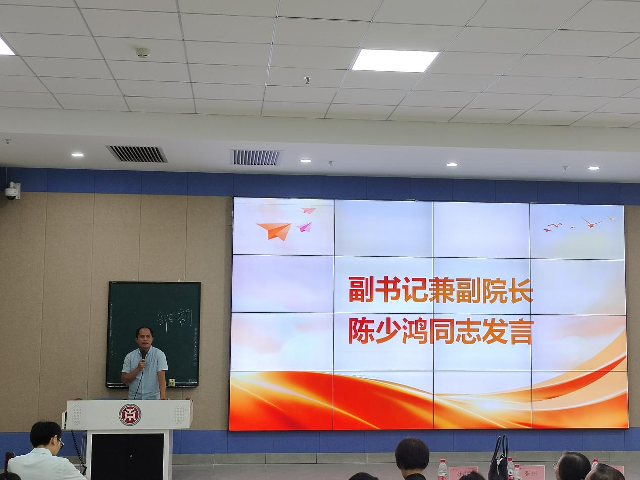 副书记兼副院长陈少鸿同志在欢迎新生入学的同时,引导学生要热爱祖国,热爱学校,与学校共同进步,积极建言献策。他也希望大家能尽快适应大学生活,适应大学环境,团结同学,一起进步。
