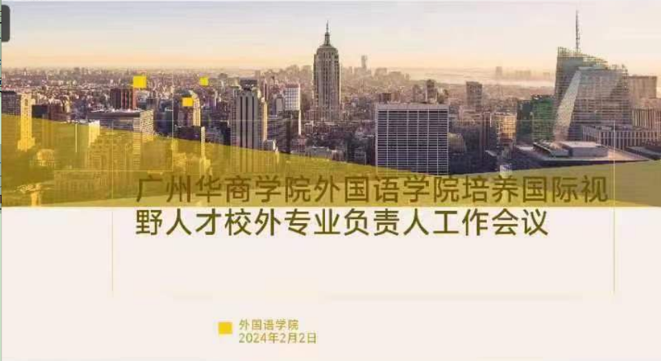 2月2日上午10点,pp电子官方网站入口召开国际视野人才培养校外专业负责人工作会议,pp电子官方网站入口副院长(主持工作)杜秀君教授、英语专业负责人王进教授、翻译专业负责人涂兵兰教授以及日语专业负责人张秀强教授参会。会议由杜秀君教授主持。