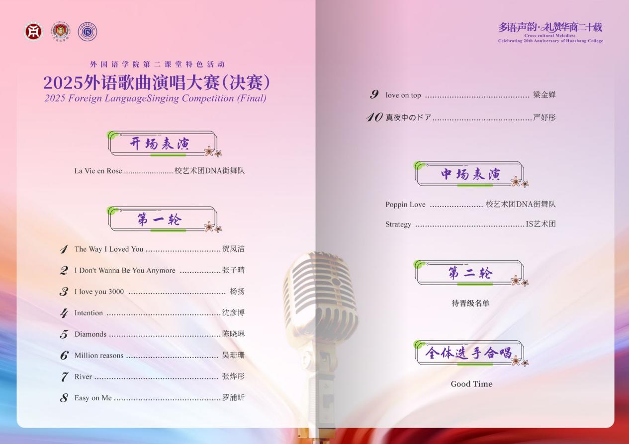 这场外语歌曲演唱大赛不仅是一场音乐的狂欢,更是一场文化的交流与碰撞。在歌声中,我们感受到了不同语言的独特魅力,也见证了华商学子对音乐的热爱与追求。二十载弦歌不辍,多语声韵共鸣!让我们共同期待华商学子在未来更广阔的舞台上,继续绽放青春光彩,书写属于自己的精彩篇章!