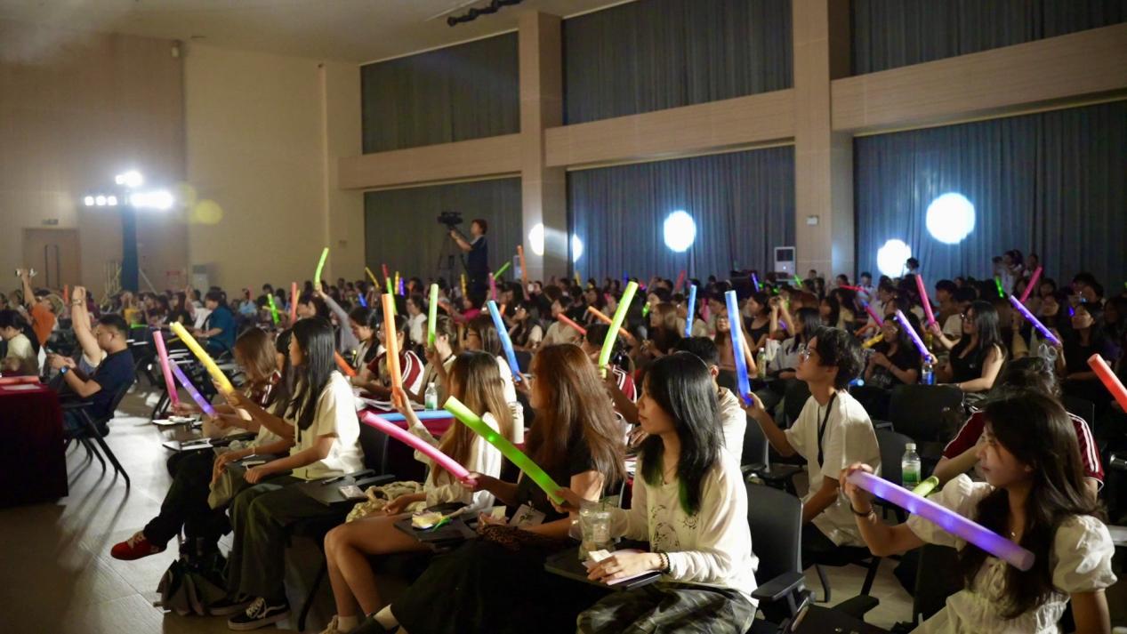 在热烈的欢呼声中,全体获奖选手携手返场,以一首活力四射的《Good Time》点燃全场!青春洋溢的和声在报告厅回荡,观众们挥舞着荧光棒随节奏摇摆,舞台上下瞬间融汇成一片璀璨星海。这场跨越语言与专业的大合唱,不仅展现了华商学子卓越的艺术风采,更生动诠释了奋发向上的华商精神。当最后一个音符落下,经久不息的掌声为这场献礼二十周年的音乐盛宴画上圆满句号,也将属于全体华商人的美好记忆定格。