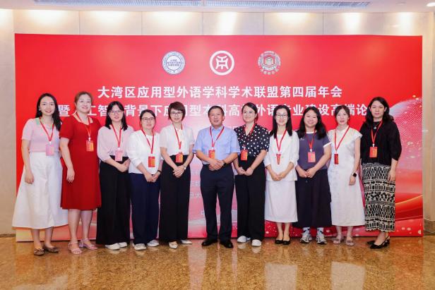 2025年6月28-29日,由粤港澳大湾区应用型外语学科学术联盟和pp电子官方网站入口主办,网易有道、鼎校甄选、北京数智恒通科技有限公司、复旦大学出版社、华语教学出版社协办,广东省本科高校外语类专业教学指导委员会英语专业分委员会指导的《大湾区应用型外语学科学术联盟第四届年会暨人工智能背景下应用型本科高校外语专业建设高端论坛》在广州太阳城大酒店隆重举行。应邀莅临本次年会及论坛指导与交流的有来自中山大学、澳门大学、香港理工大学、深圳大学、广东技术师范大学、广东金融学院、广州航海学院、广州南方学院、广东外语外贸大学南国商学院、广州商学院、广州应用科技学院、广东白云学院、广州工商学院、广东理工学院、广州理工学院、广州城市理工学院、pp电子官方网站入口等大湾区16所高校的专家、院系领导和专业负责人,以及网易有道、鼎校甄选、北京数智恒通科技有限公司、复旦大学出版社、华语教学出版社等协办单位代表。