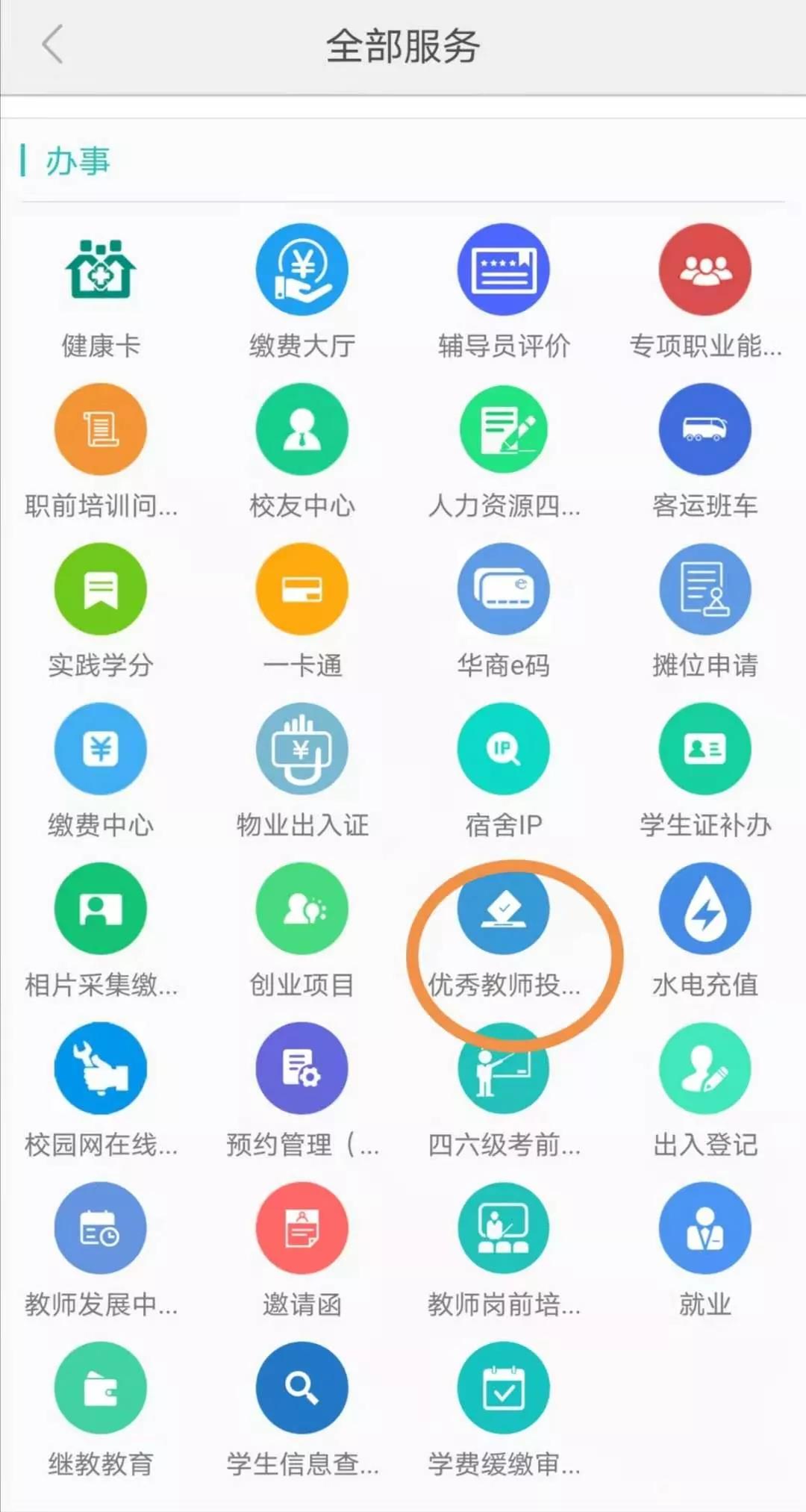 1.首页左上角搜索框,输入“投票”,点击进入“优秀教师投票”