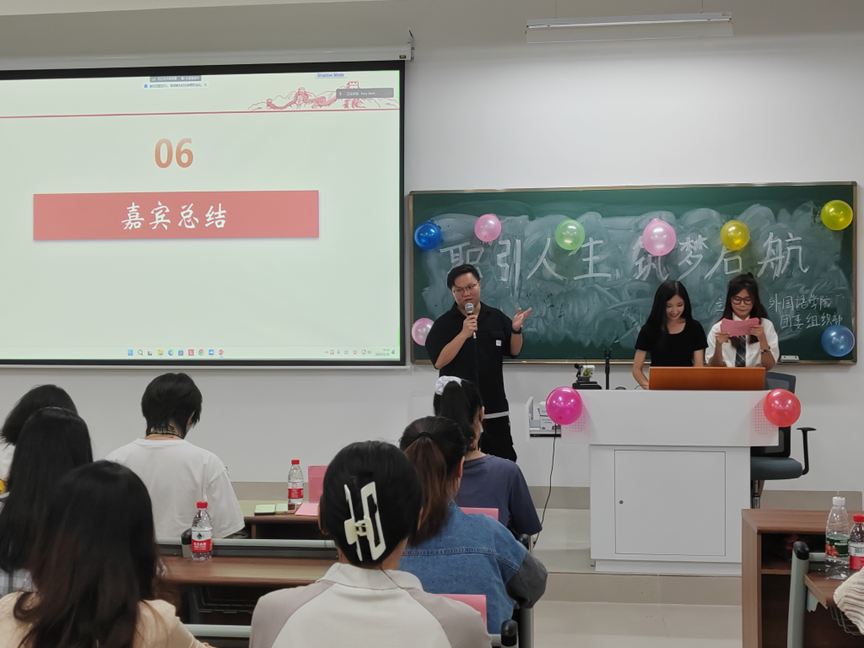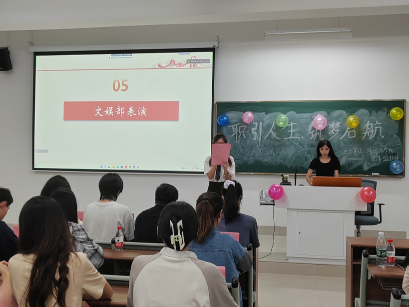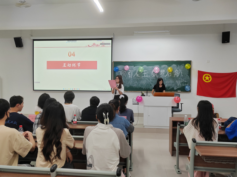 为深入学习宣传贯彻党的二十大学习精神,以及中央经济工作会议提出的“把促进青年特别是高校毕业生就业工作摆正在更加突出的位置”的要求,引领大学生立足实际,找准定位,树立理性、平实的择业观和就业观,主动到基层一线“自找苦吃”、踏实奋斗、成长成才。作为新时代青年,我们要树立正确的择业观、就业观,引导就业预期,科学把握就业方向和职业目标,为将来的走上工作岗位后摆正工作态度、提升工作业绩打下坚实基础。因此,pp电子官方网站入口团委以“‘职’引人生,筑梦启航”为主题于2023年10月25号在肇庆校区十六号楼202教室举办了十月团生总结大会。
