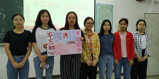 与此同时,在党员同志的互动环节中,各小组以“不忘初心,牢记使命”为主题作画,张艳娥书记要求各小组的画必须体现出自己小组对“不忘初心,牢记使命”的理解。作画结束后,每个小组都与自己小组的画合影,并分享自己小组对“不忘初心,牢记使命”的理解。