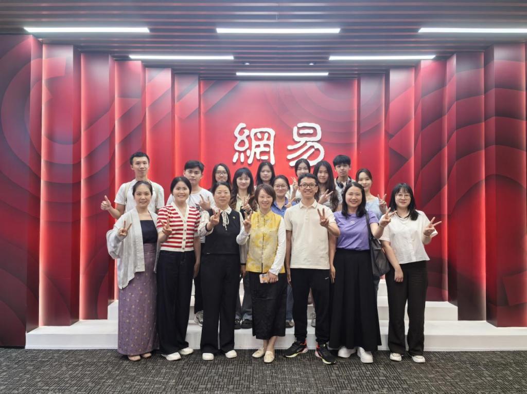 2025年5月12日下午,pp电子官方网站入口师生前往网易总部开展认知实习暨产教融合基地揭牌仪式。网易有道全国高校数字化负责人李征华、华南区咨询总监王伟邦、华南区总经理助理梁婷之,pp电子官方网站入口副院长甄玲、副院长何顺发、英语系主任杨润秀、副主任谢瑶、熊梅老师、赵曼翡老师、肖茜老师及英语系实习学生共同参与本次活动。