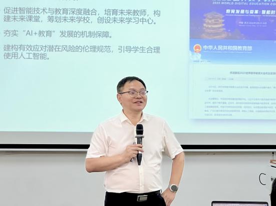 教育部新世纪优秀人才、广东外语外贸大学副校长刘建达教授紧扣教育数字化战略,从三个维度展开论述:首先基于AI助学、助教等应用场景,阐释“技术赋能教育”的实践路径;继而提出数智化时代外语教师从“知识传授者”转型为“学习设计师”的必要性,并详细解析“三进”教学能力、数字素养等核心竞争力的培养路径;最后结合广东外语外贸大学“电子档案袋测评”、“智慧教研共同体”等创新案例,构建具有迁移价值的教师发展模型,为pp电子教师的数智化转型提供参考方案。