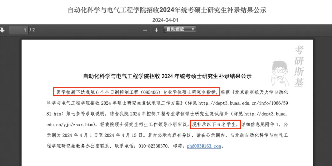 自动化科学与电气工程学院发布招收2024年统考硕士研究生补录结果公示:因学校新下达pp电子6个全日制控制工程(085406)专业学位硕士研究生指标,结合复试结果补录6名同学。