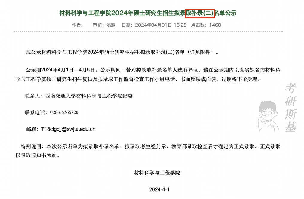 转眼已到4月中旬,24考研大部分院校的一志愿复试已经结束,有的院校甚至调剂也已经结束啦。除了一志愿录取、调剂录取之外,往年还有一部分同学是被补录的!目前已经有多所院校公布了补录取名单!所以说暂时还没有结果的同学也千万不要放弃,说不定下一个被补录取的就是你呢!
